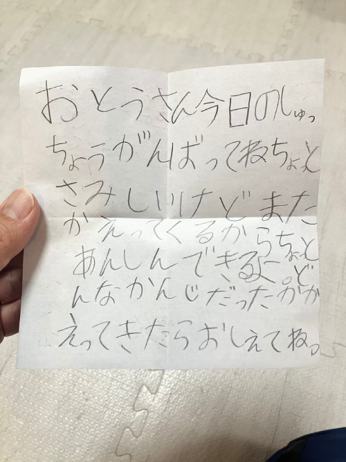 【10位】手紙を渡してきたので「ありがとう」と受け取ったら娘大泣き。 泣くのを我慢しながら手紙を書いたんだね。 出張行きたくねぇなぁ。 #年長娘
