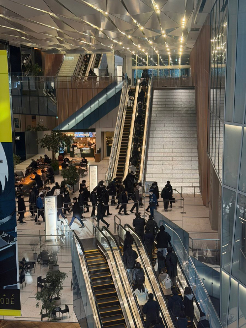 【16位】ビル内に階段作らないで滝にしたらエスカレーターで人を捌ききれなくなって渋滞してるのちょっとデザインの敗北みがあるな